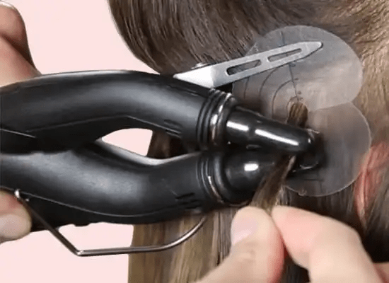 Traditional hot fusion hair extensions need melt the keratin glue with machine, and then complete the hair extension after cooling.