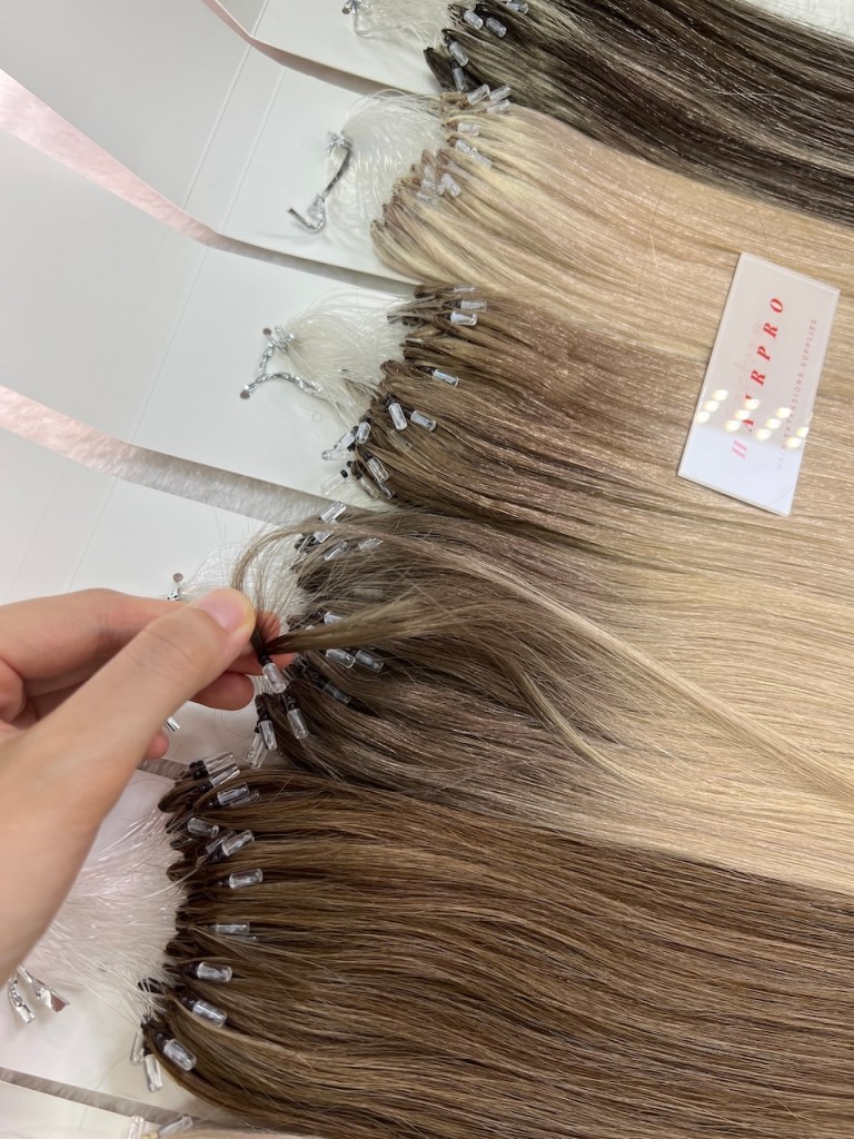 Micro ring I-tip hair extensions use small, silicone-lined rings for secure attachment. They offer a natural look, minimal damage, and are easy to apply and remove. The micro rings are discreet and provide a comfortable fit with a long-lasting hold.