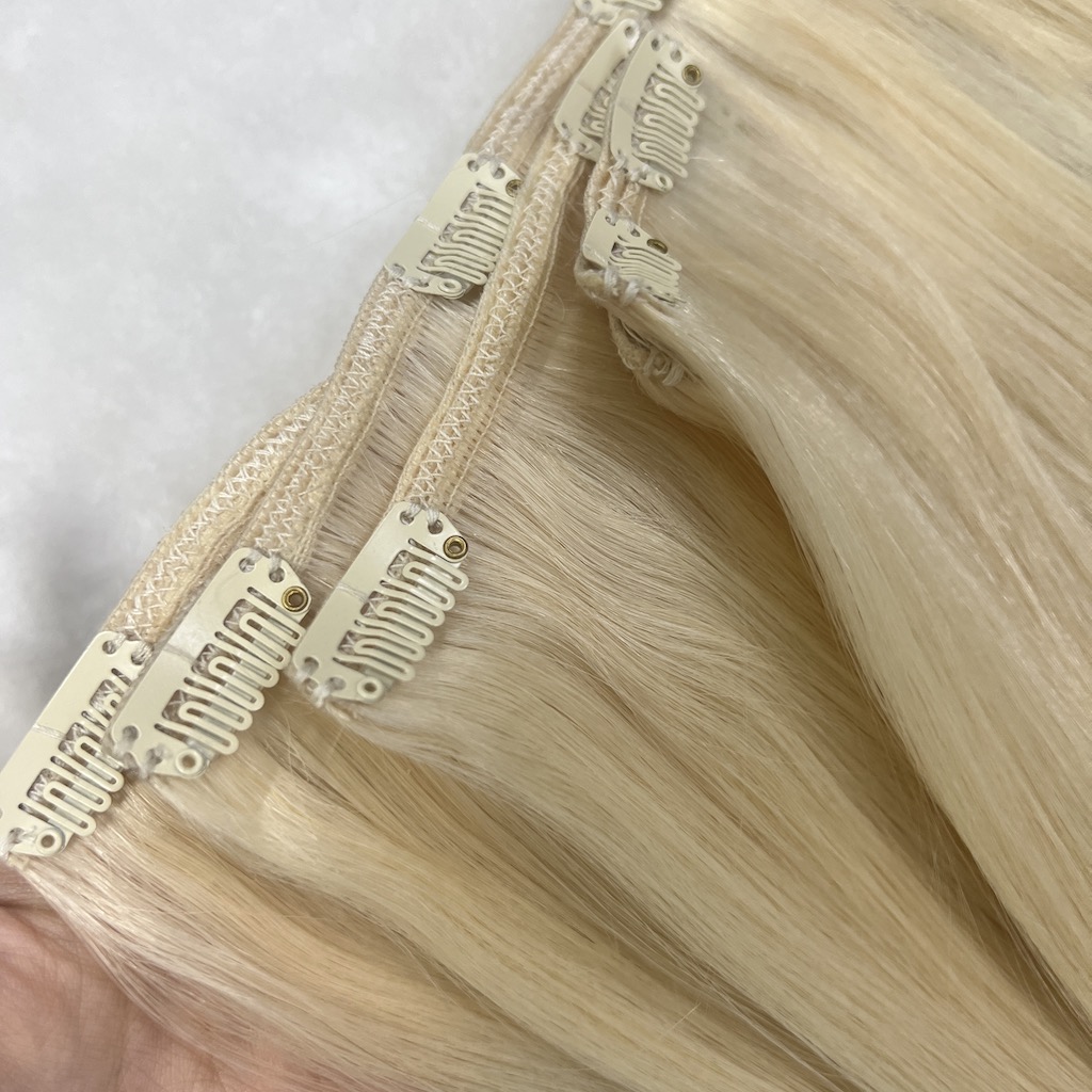 PU clip-ins have a polyurethane (PU) base that offers a durable and flexible hold. The PU material conforms well to the scalp, providing a secure fit and a natural look. These clip-ins are often more comfortable and less visible than other types, making them ideal for a seamless blend with natural hair.
